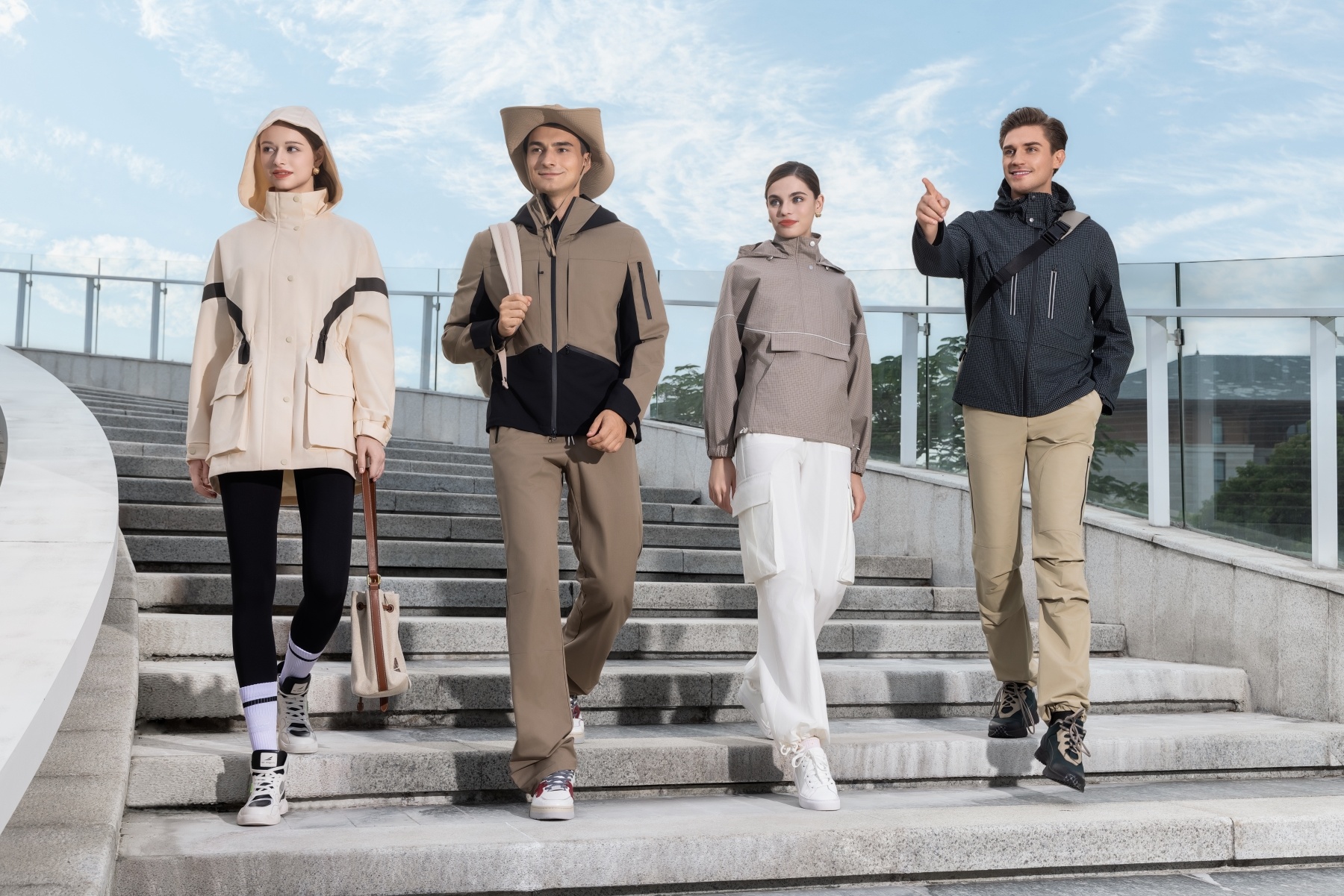 休闲运动服饰打造360°无束缚体验,融入极简剪裁,满足运动休闲与日常通勤双重需求。夹克服、冲锋衣及羽绒服等产品秉承“功能即美学”理念,覆盖男女同款设计,实现户外性能与都市潮流的跨界突破。