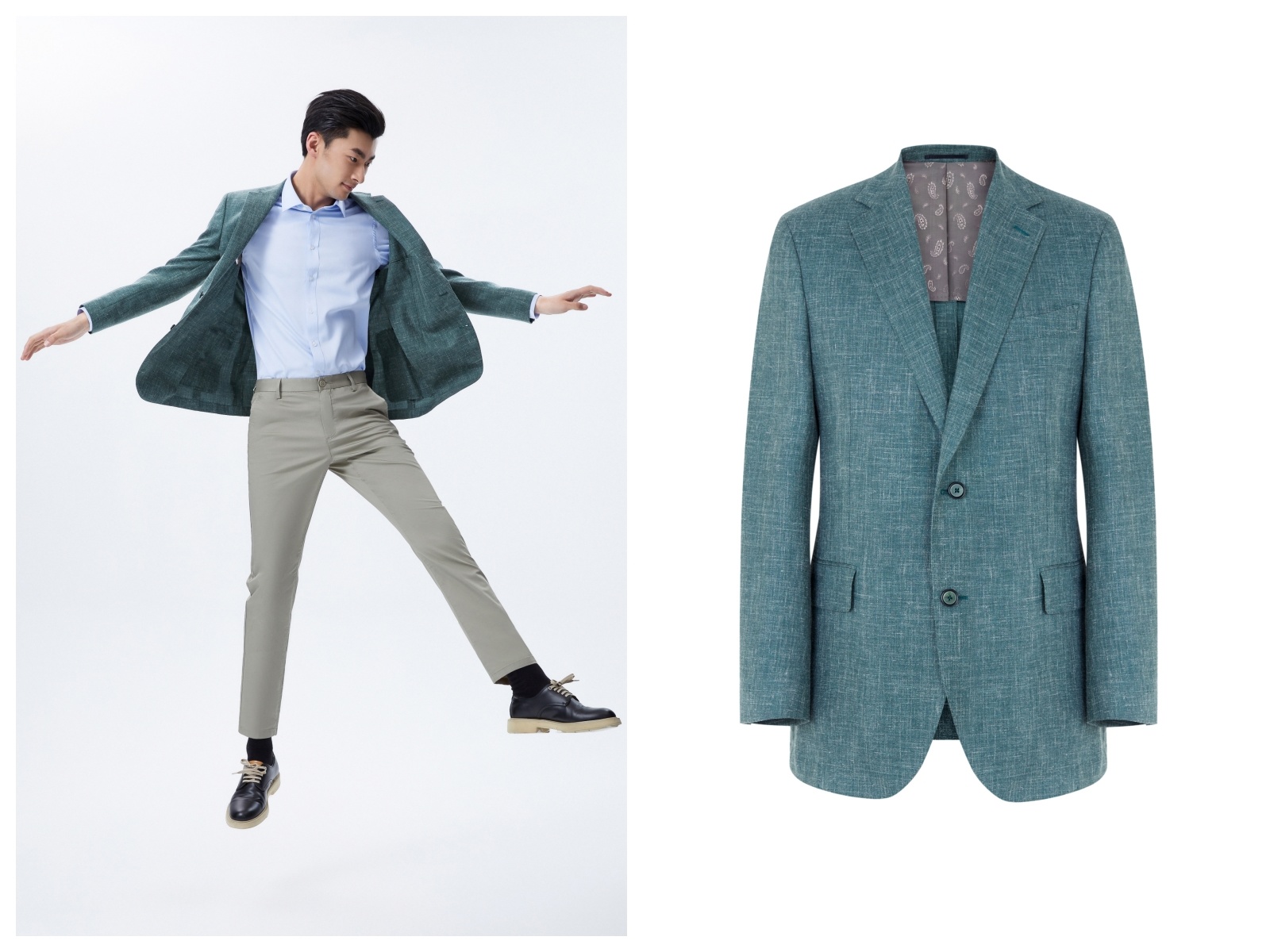 舒适易护理系列主打抗皱、四面弹、可机洗功能,专为现代商旅场景设计。面料在保持羊毛天然柔软度的同时实现“免熨烫”特性,搭配360°弹力支撑,满足快节奏生活的极致舒适需求。