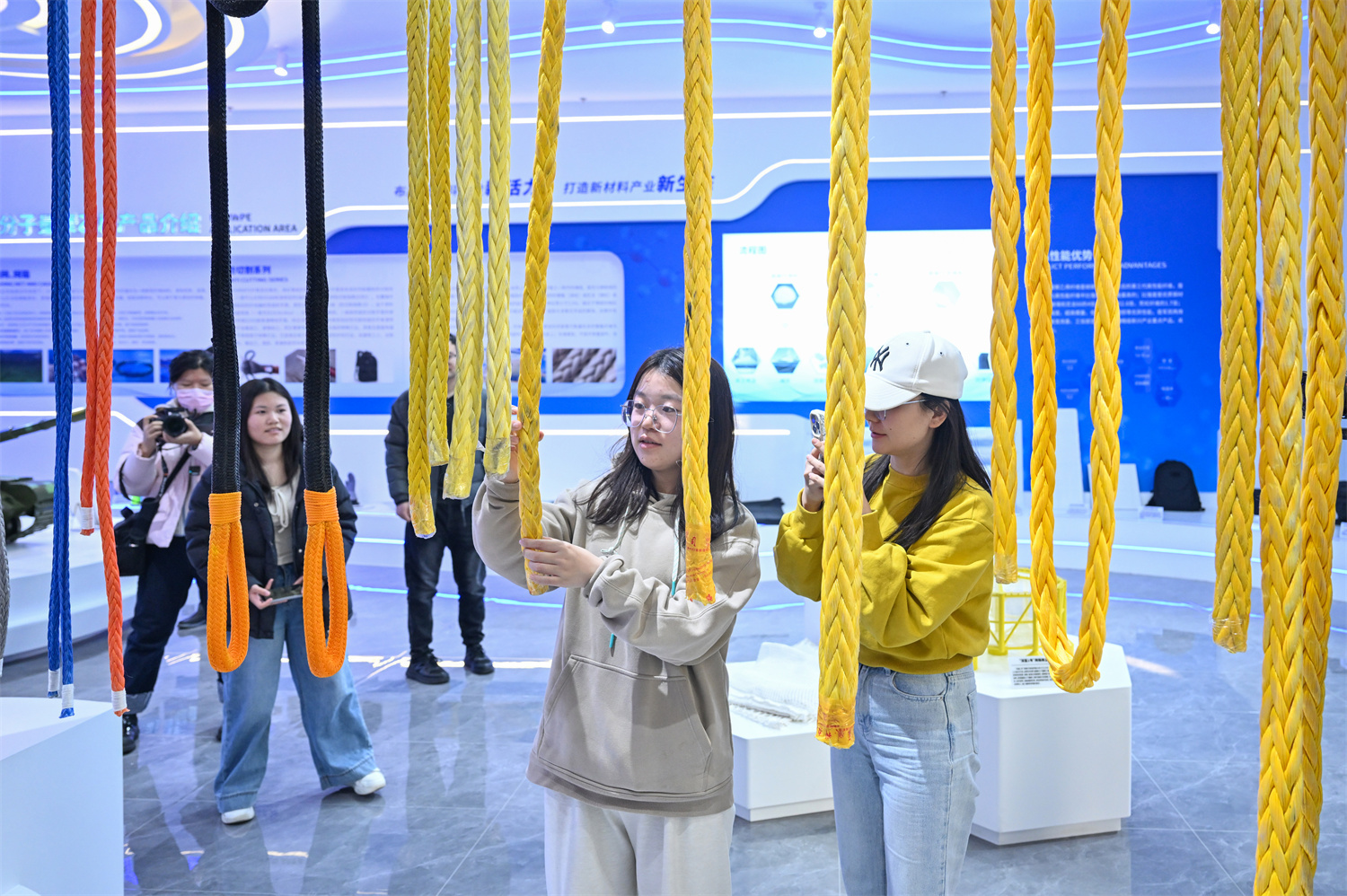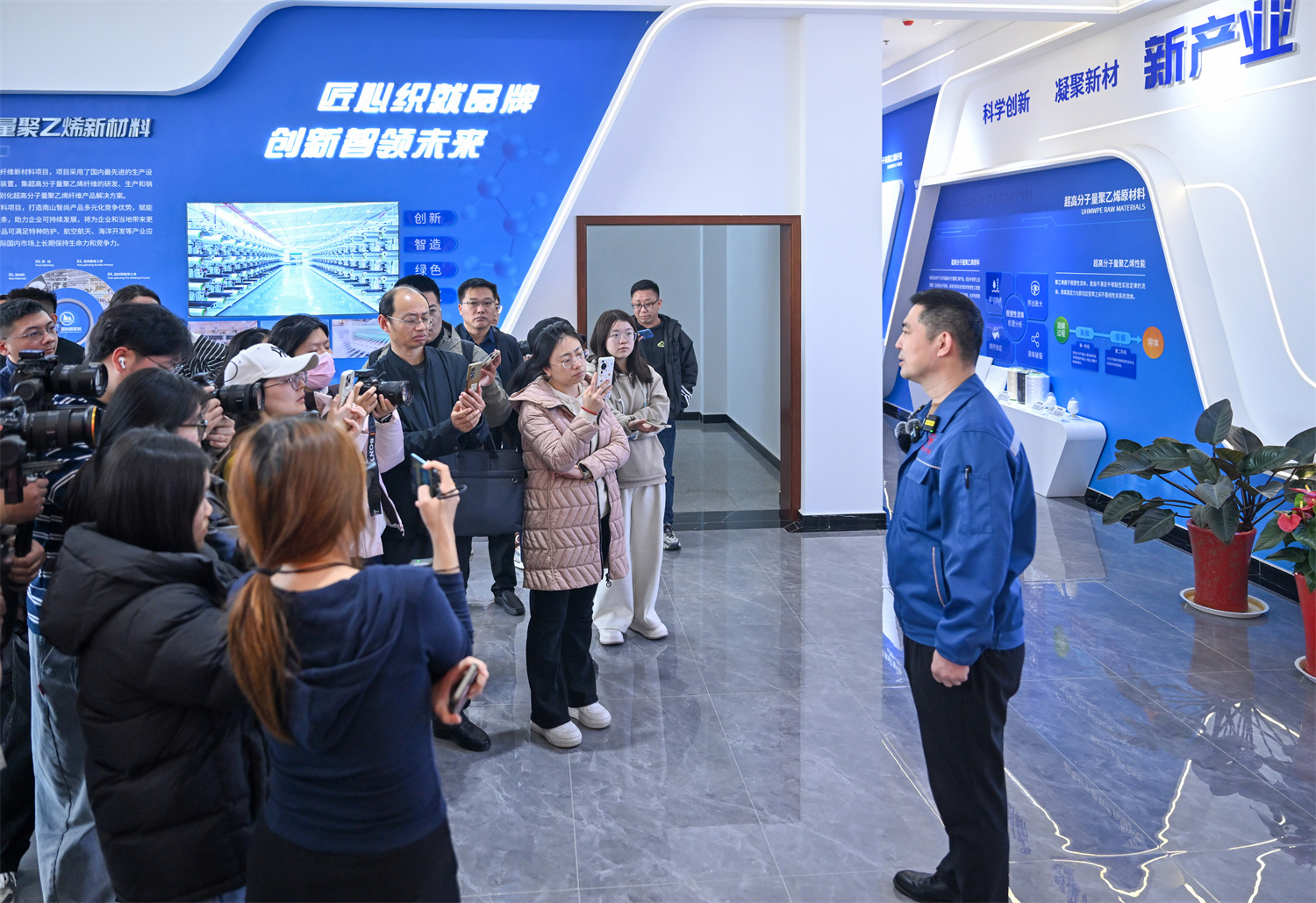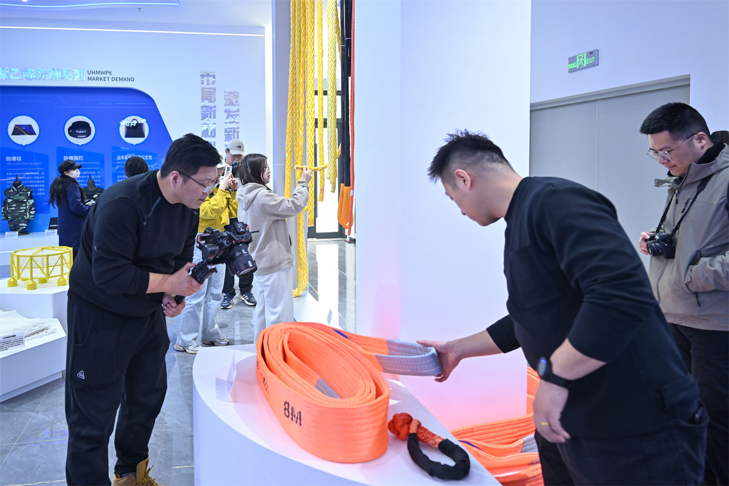 采访团一行实地参观了南山智尚超高分子量聚乙烯纤维公司展厅。