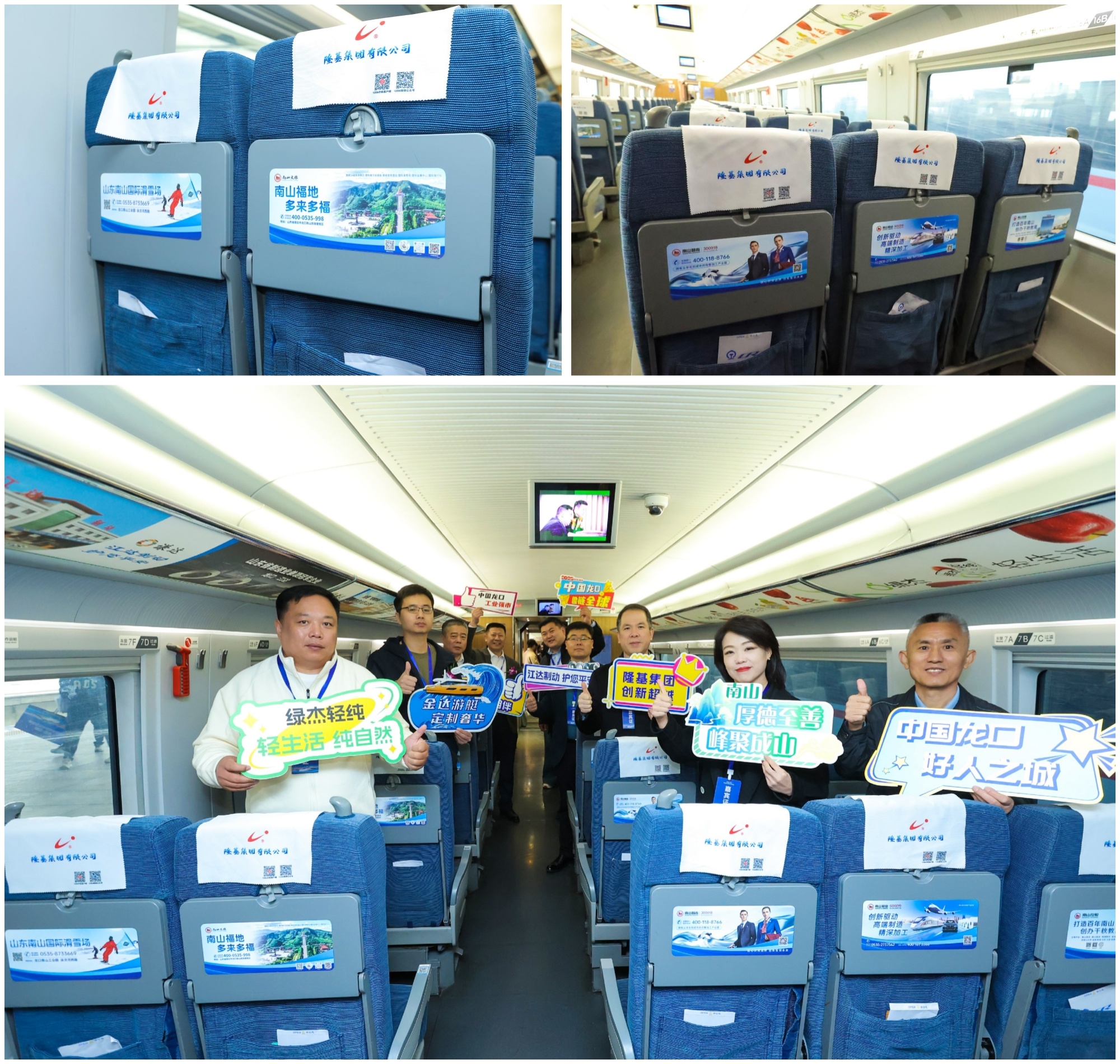 在高铁车厢内,南山以桌贴形式向乘客们推介了南山控股、南山铝业、南山智尚、南山旅游景区等产业,让乘客对南山的产品和品牌有了更深入的了解。
