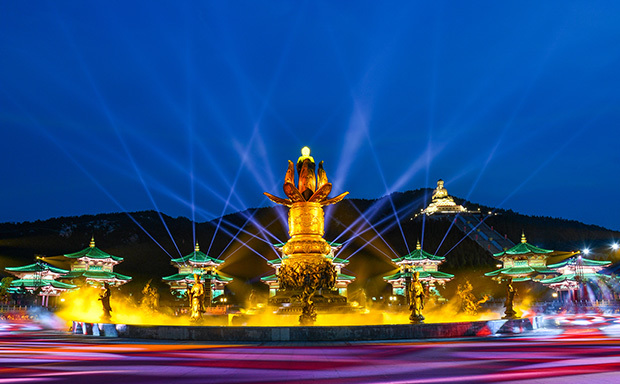 分为宗教历史文化园、中华历史文化园两大部分,2011年1月被授予国家5A级旅游景区。这里古称卢山,素有“东莱第一山”之美誉,这里依山傍海、景色秀美、气候宜人、交通便利,这里自然景观和人文景观交相辉映,勾勒出一幅“寿比南山”的人间美景。